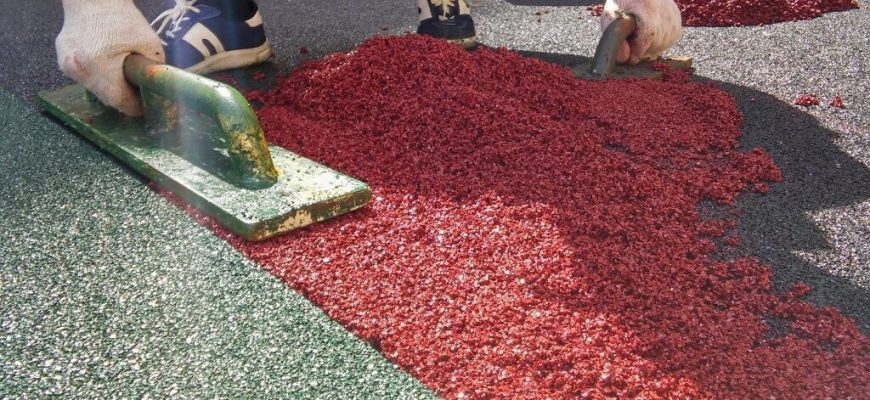 | Раскладка слоя | Ровное распределение крошки по подготовленной поверхности с помощью специализированных инструментов или вручную | Толщина слоя зависит от назначения — от 3 до 8 см |